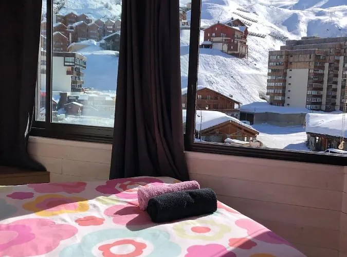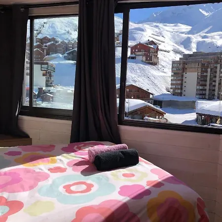 Studio Cosy Vue Montagne Appartement van 23 m^2, gelegen op 1 km van het stadscentrum van Val Thorens, biedt logeerkamers met uitzicht op de berg.